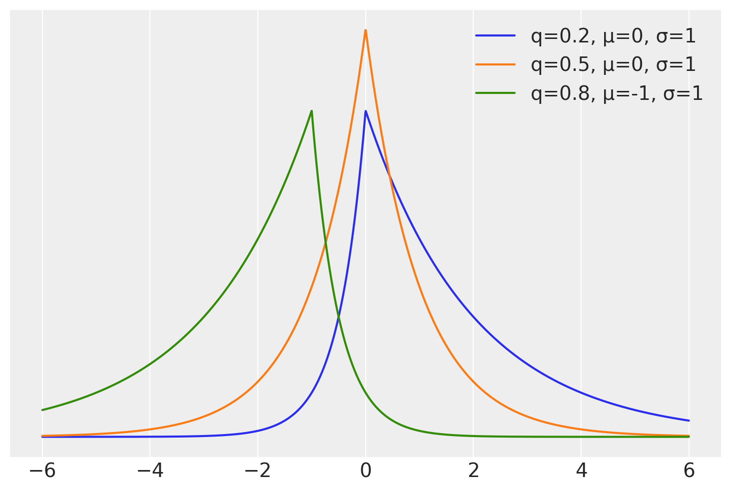 On the next cell we compute the pdf of 3 distribution from the Asymmetric Laplace family