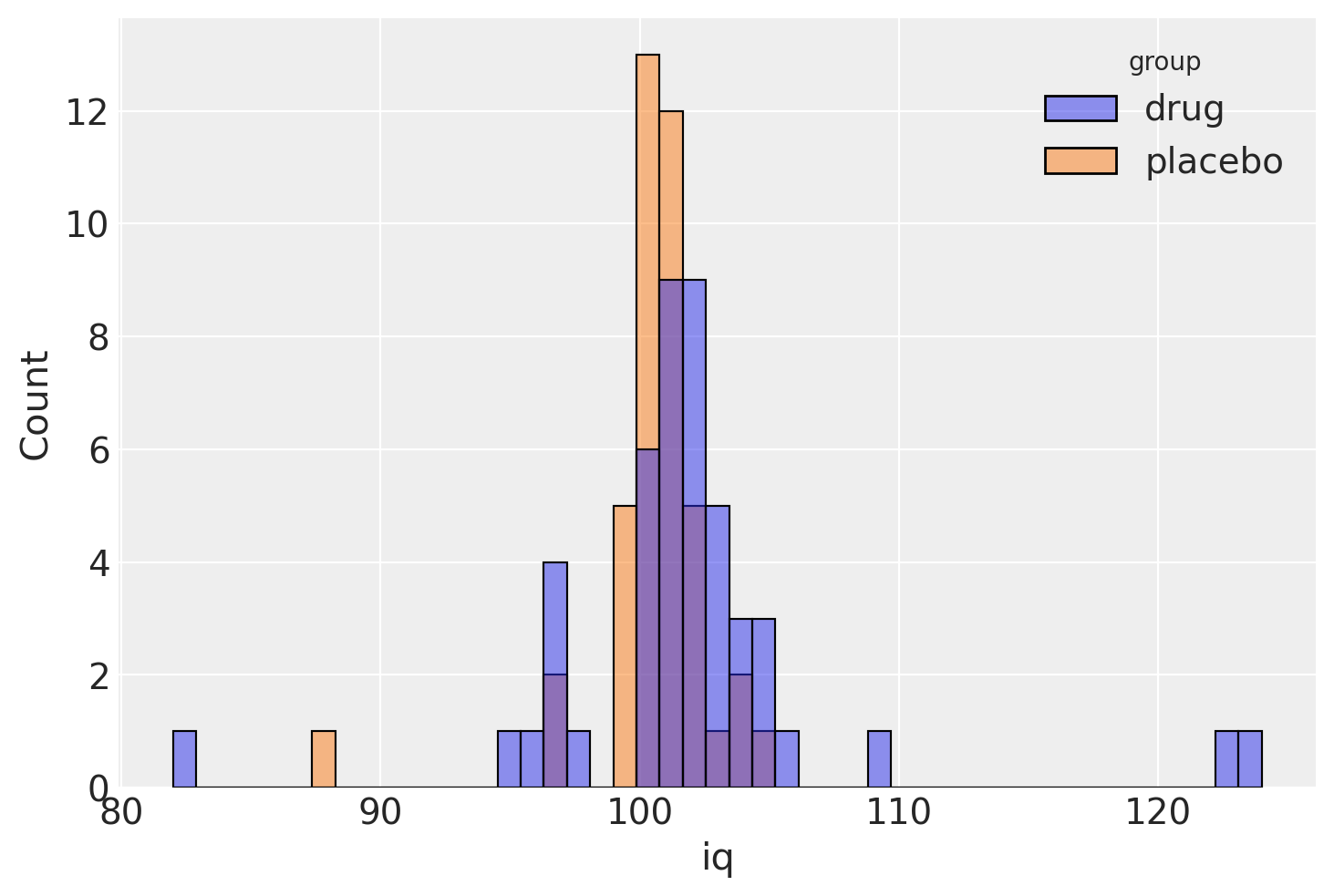 df1 = pd.DataFrame({"iq": iq_drug, "group": "drug"})