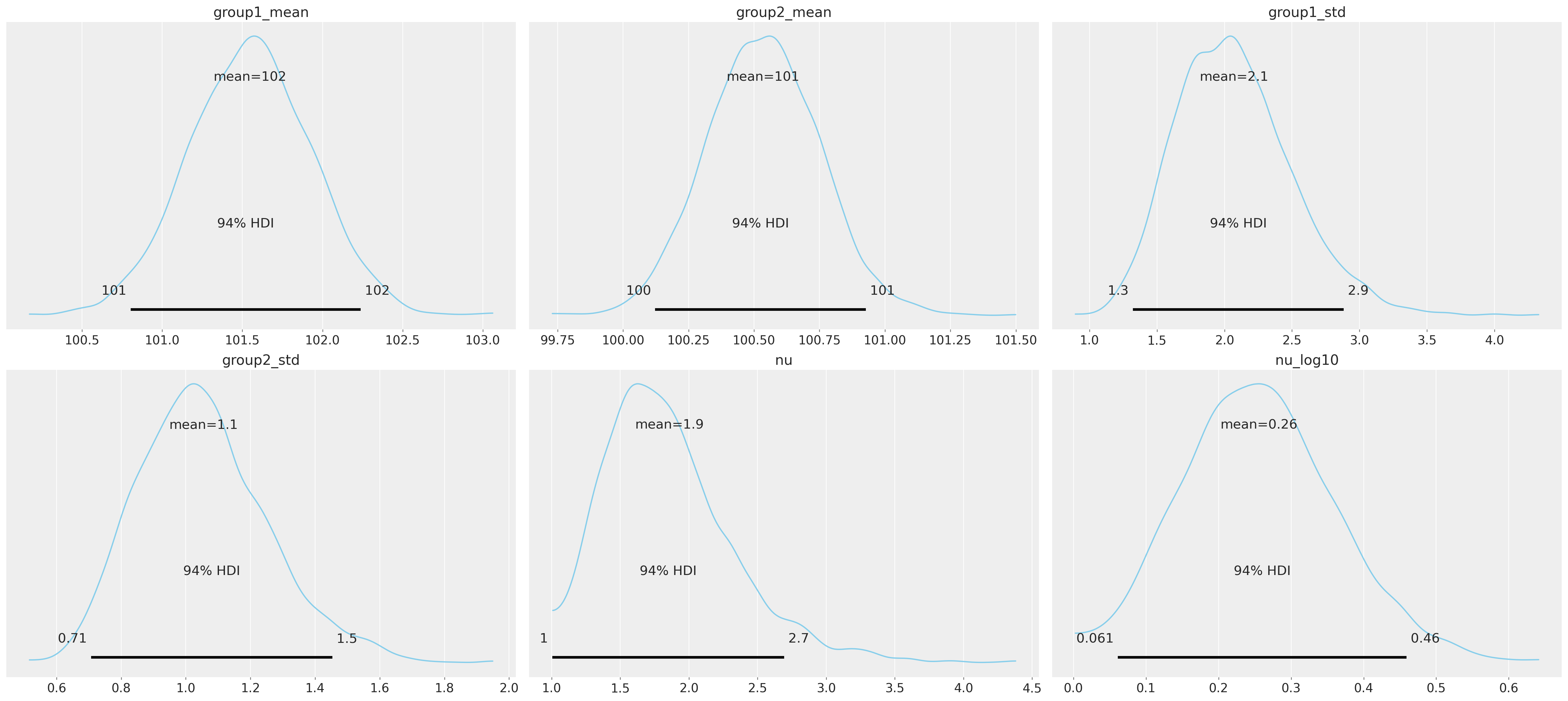 var_names=["group1_mean", "group2_mean", "group1_std", "group2_std", "nu", "nu_log10"],