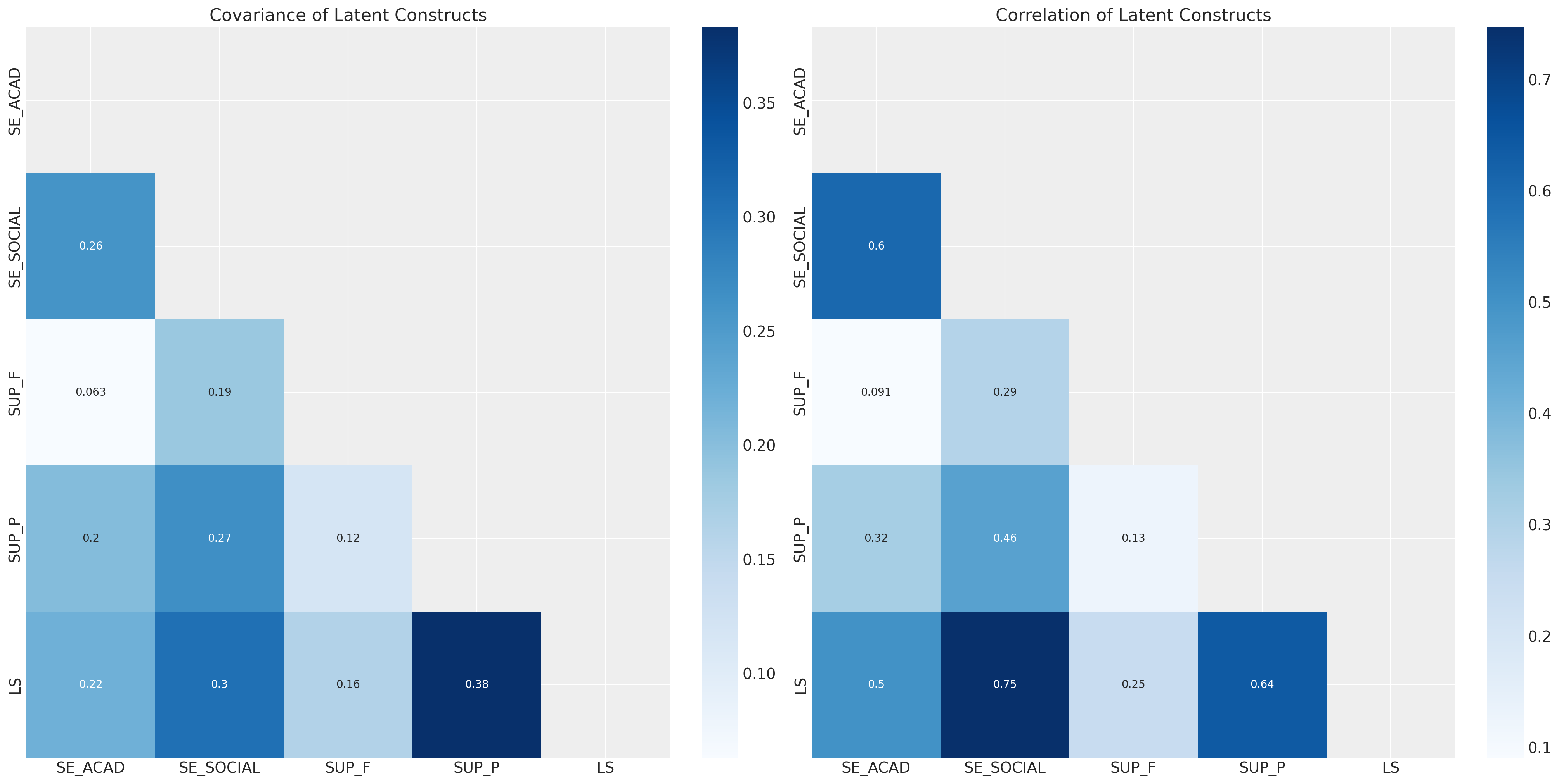 | SUP_F -> SE_SOC ->LS | SUP_F -> SE_ACAD ->LS | Total Indirect Effects SUP_F | Total Effects SUP_F | |