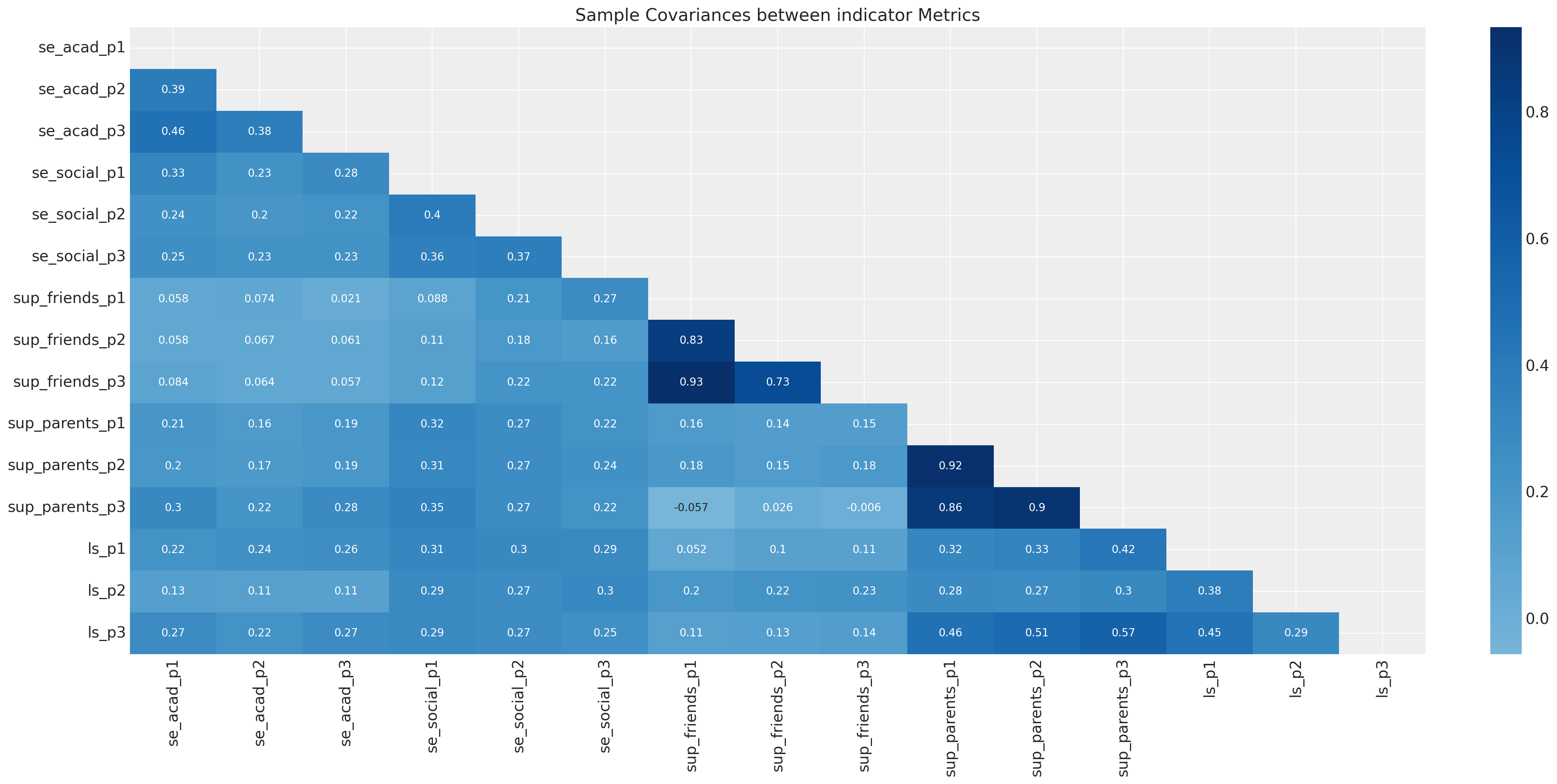 The lens here on the sample covariance matrix is common in the traditional SEM modeling. CFA and SEM models are often estimated by fitting parameters to the data by optimising the parameter structure of the covariance matrix. Model assessment routines often gauge the model’s ability to recover the sample covariance relations. There is a slightyly different (less constrained) approach taken in the Bayesian approach to estimating these models which focuses on the observed data rather than the derived summary statistics.