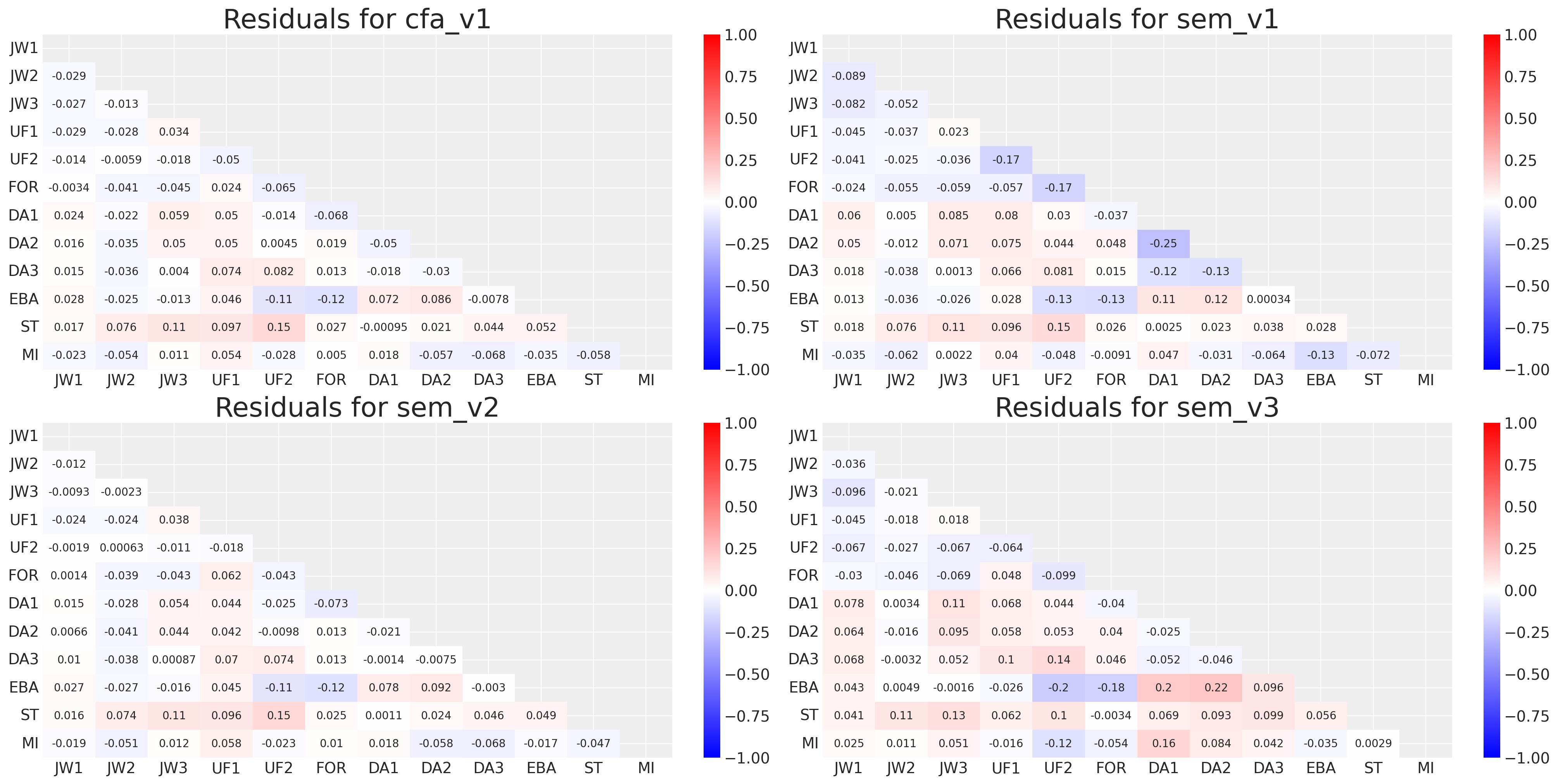 The structure of the SEM workflow mirrors the Bayesian workflow closely. Each step—from specifying measurement models to refining residual covariances—reflects the same cycle of hypothesis formulation, model testing, and iterative improvement.