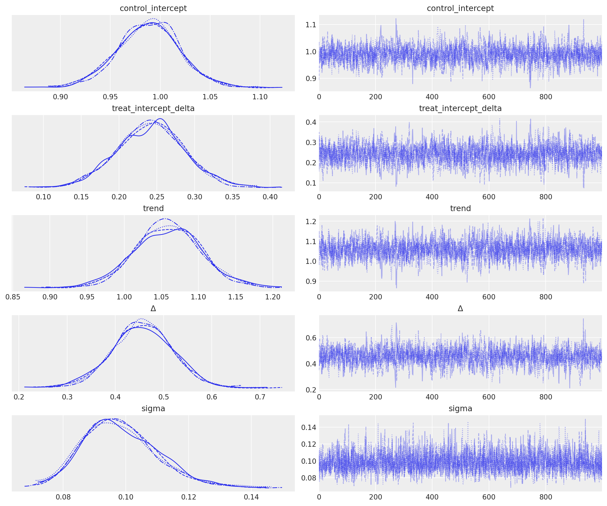 NUTS: [control_intercept, treat_intercept_delta, trend, Δ, sigma]