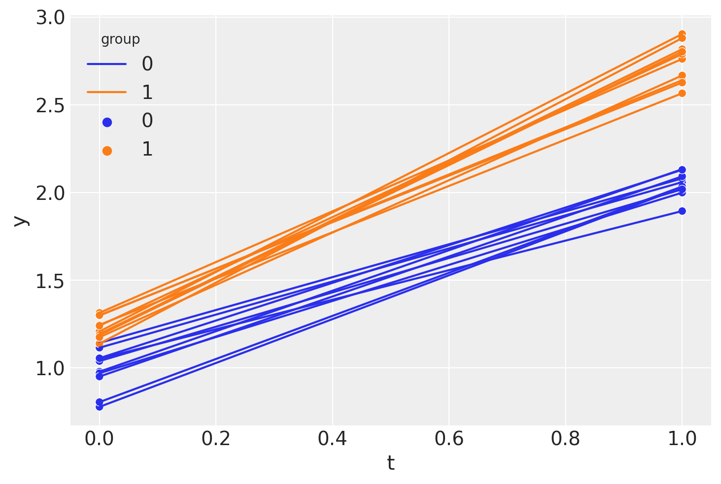 pm.set_data({"t": ti, "group": group_control, "treated": treated})