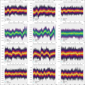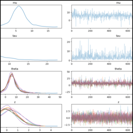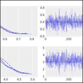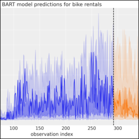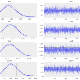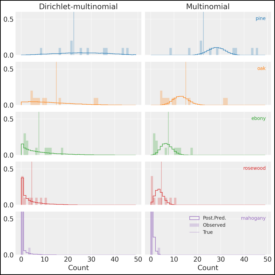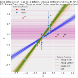 PyMC Example Gallery# Introductory# General Overview Introductory Overview of PyMC Simple Linear Regression GLM: Linear regression General API quickstart General API quickstart Library Fundamentals# Distribution Dimensionality Distribution Dimensionality PyMC and PyTensor PyMC and PyTensor Using Data Containers Using Data Containers How to# Prior and Posterior Predictive Checks Prior and Posterior Predictive Checks Model Comparison Model comparison LKJ Cholesky Covariance Priors for Multivariate Normal Models LKJ Cholesky Covariance Priors for Multivariate Normal Models Bayesian Missing Data Imputation Bayesian Missing Data Imputation Using a “black box” likelihood function Using a “black box” likelihood function Bayesian copula estimation: Describing correlated joint distributions Bayesian copula estimation: Describing correlated joint distributions How to debug a model How to debug a model Bayesian Hypothesis Testing - an introduction Bayesian Hypothesis Testing - an introduction Automatic marginalization of discrete variables Automatic marginalization of discrete variables Using ModelBuilder class for deploying PyMC models Using ModelBuilder class for deploying PyMC models Profiling Profiling Splines Splines Updating Priors Updating Priors How to wrap a JAX function for use in PyMC How to wrap a JAX function for use in PyMC Generalized Linear Models# Binomial regression Binomial regression Discrete Choice and Random Utility Models Discrete Choice and Random Utility Models Hierarchical Binomial Model: Rat Tumor Example Hierarchical Binomial Model: Rat Tumor Example GLM-missing-values-in-covariates GLM-missing-values-in-covariates GLM: Model Selection GLM: Model Selection GLM: Negative Binomial Regression GLM: Negative Binomial Regression GLM-ordinal-features GLM-ordinal-features Regression Models with Ordered Categorical Outcomes Regression Models with Ordered Categorical Outcomes Out-Of-Sample Predictions Out-Of-Sample Predictions GLM: Poisson Regression GLM: Poisson Regression GLM: Robust Regression using Custom Likelihood for Outlier Classification GLM: Robust Regression using Custom Likelihood for Outlier Classification GLM: Robust Linear Regression GLM: Robust Linear Regression Rolling Regression Rolling Regression Bayesian regression with truncated or censored data Bayesian regression with truncated or censored data A Primer on Bayesian Methods for Multilevel Modeling A Primer on Bayesian Methods for Multilevel Modeling Case Studies# Bayesian Estimation Supersedes the T-Test Bayesian Estimation Supersedes the T-Test Confirmatory Factor Analysis and Structural Equation Models in Psychometrics Confirmatory Factor Analysis and Structural Equation Models in Psychometrics Generalized Extreme Value Distribution Generalized Extreme Value Distribution Bayesian Workflow with SEMs Bayesian Workflow with SEMs The Bayesian Workflow: COVID-19 Outbreak Modeling The Bayesian Workflow: COVID-19 Outbreak Modeling Estimating parameters of a distribution from awkwardly binned data Estimating parameters of a distribution from awkwardly binned data Factor analysis Factor analysis Hierarchical Partial Pooling Hierarchical Partial Pooling NBA Foul Analysis with Item Response Theory NBA Foul Analysis with Item Response Theory Probabilistic Matrix Factorization for Making Personalized Recommendations Probabilistic Matrix Factorization for Making Personalized Recommendations Model building and expansion for golf putting Model building and expansion for golf putting Fitting a Reinforcement Learning Model to Behavioral Data with PyMC Fitting a Reinforcement Learning Model to Behavioral Data with PyMC Reliability Statistics and Predictive Calibration Reliability Statistics and Predictive Calibration A Hierarchical model for Rugby prediction A Hierarchical model for Rugby prediction Forecasting Hurricane Trajectories with State Space Models Forecasting Hurricane Trajectories with State Space Models Causal Inference# Simpson’s paradox Simpson’s paradox Introduction to Bayesian A/B Testing Introduction to Bayesian A/B Testing Bayesian Non-parametric Causal Inference Bayesian Non-parametric Causal Inference Difference in differences Difference in differences Counterfactual inference: calculating excess deaths due to COVID-19 Counterfactual inference: calculating excess deaths due to COVID-19 Interrupted time series analysis Interrupted time series analysis Interventional distributions and graph mutation with the do-operator Interventional distributions and graph mutation with the do-operator Bayesian mediation analysis Bayesian mediation analysis Bayesian moderation analysis Bayesian moderation analysis Regression discontinuity design analysis Regression discontinuity design analysis Gaussian Processes# Baby Births Modelling with HSGPs Baby Births Modelling with HSGPs GP-Circular GP-Circular Heteroskedastic Gaussian Processes Heteroskedastic Gaussian Processes Kronecker Structured Covariances Kronecker Structured Covariances Gaussian Processes: Latent Variable Implementation Gaussian Processes: Latent Variable Implementation Marginal Likelihood Implementation Marginal Likelihood Implementation Gaussian Process for CO2 at Mauna Loa Gaussian Process for CO2 at Mauna Loa Example: Mauna Loa CO_2 continued Example: Mauna Loa CO_2 continued Mean and Covariance Functions Mean and Covariance Functions Sparse Approximations Sparse Approximations Student-t Process Student-t Process Gaussian Process (GP) smoothing Gaussian Process (GP) smoothing Gaussian Processes: HSGP Advanced Usage Gaussian Processes: HSGP Advanced Usage Gaussian Processes: HSGP Reference & First Steps Gaussian Processes: HSGP Reference & First Steps Multi-output Gaussian Processes: Coregionalization models using Hamadard product Multi-output Gaussian Processes: Coregionalization models using Hamadard product Gaussian Processes using numpy kernel Gaussian Processes using numpy kernel Modeling spatial point patterns with a marked log-Gaussian