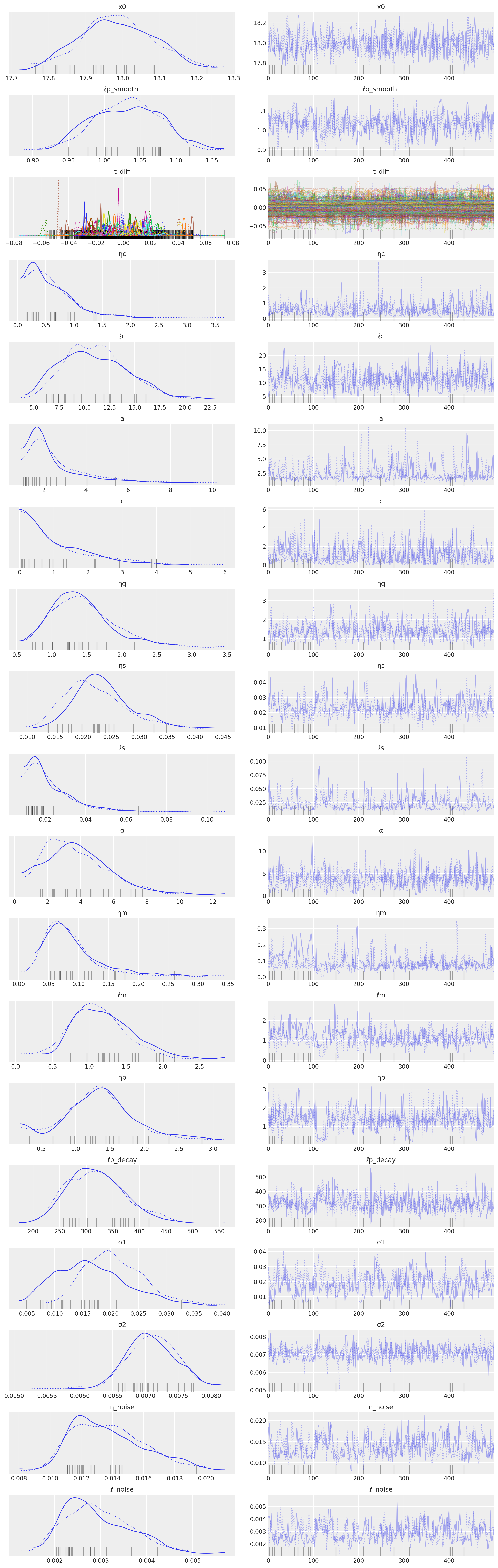 NUTS: [ℓ_noise, η_noise, σ2, σ1, t_diff, ℓp_smooth , ℓp_decay, ηp, ℓm, ηm, α, ℓs, ηs, ηq, c, a, x0, ℓc, ηc]