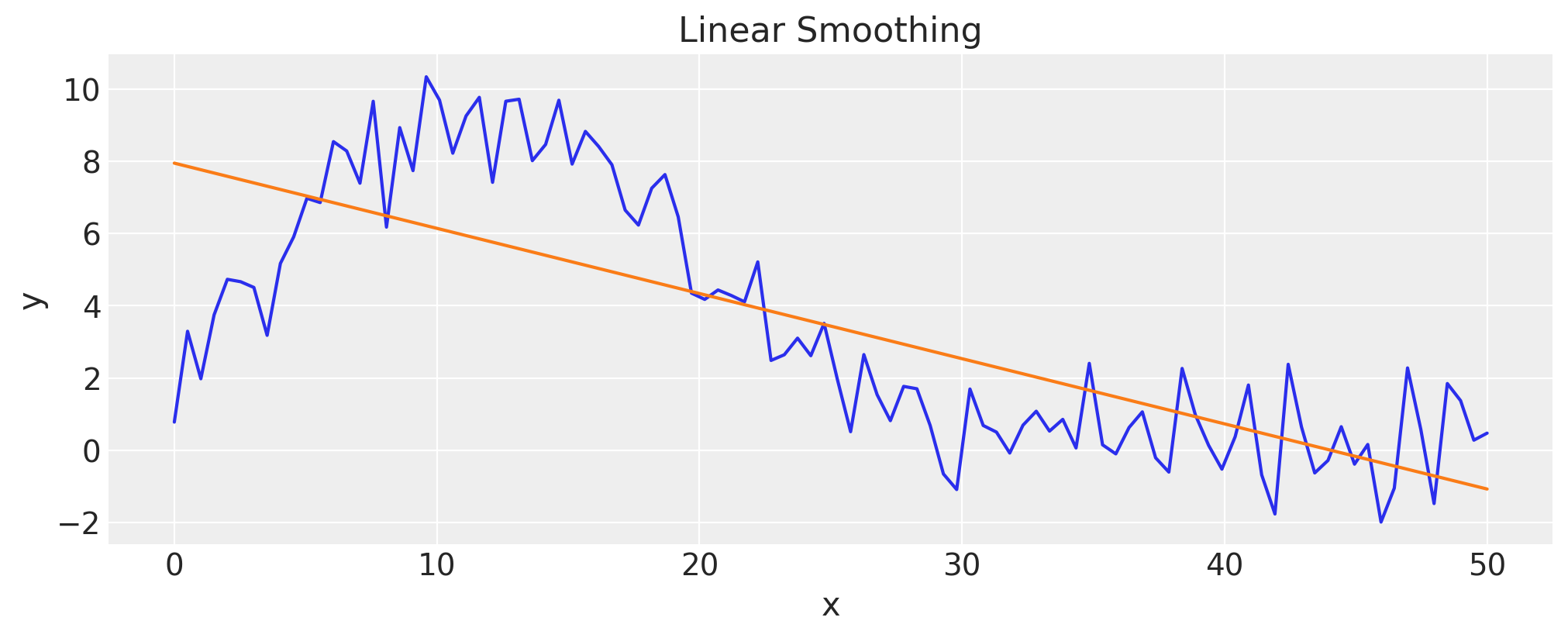 ax.set(title="Linear Smoothing", xlabel="x", ylabel="y");
