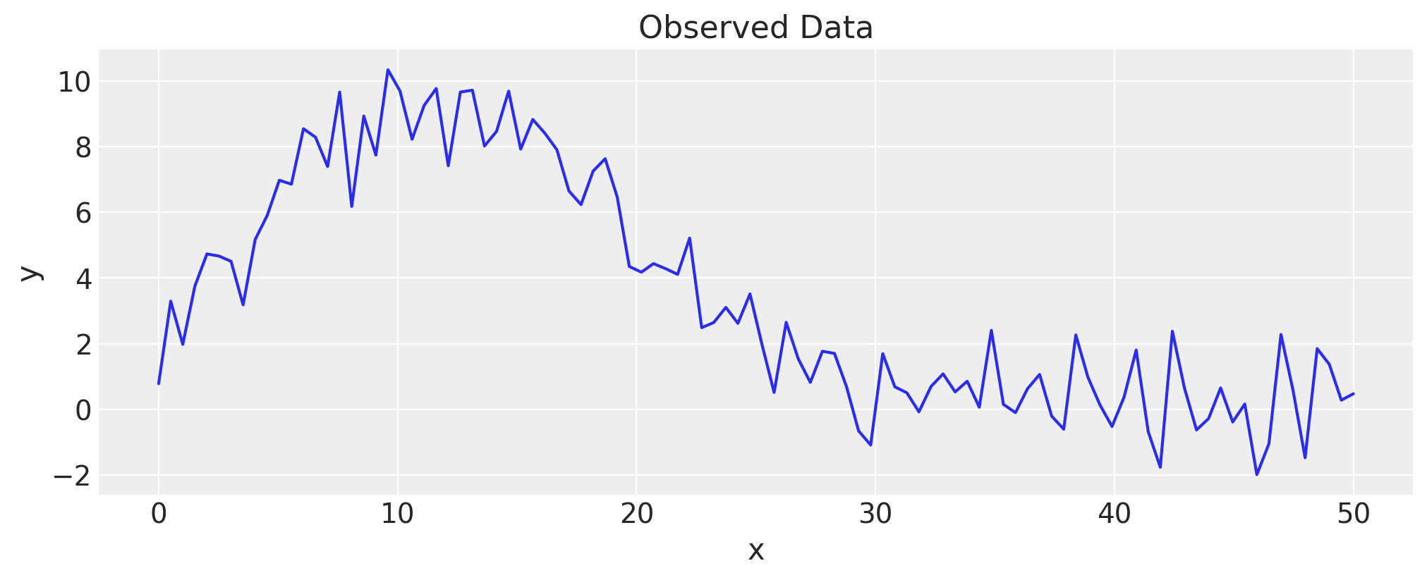 ax.set(title="Observed Data", xlabel="x", ylabel="y");