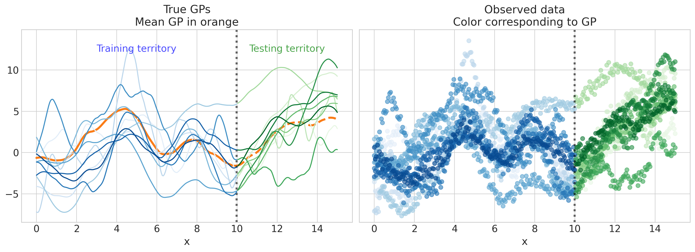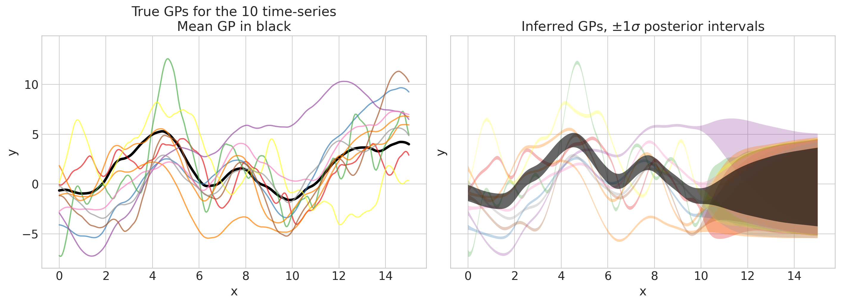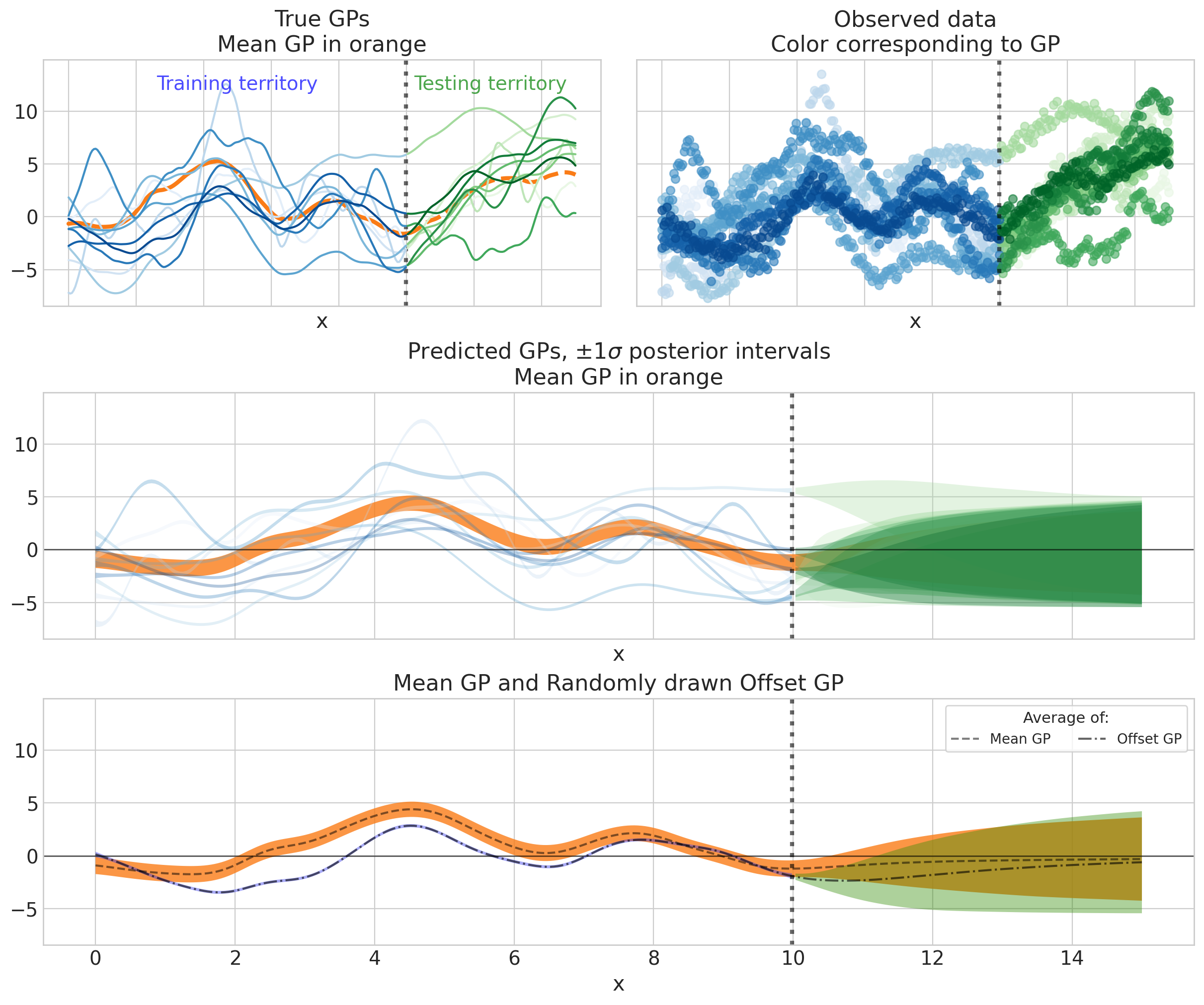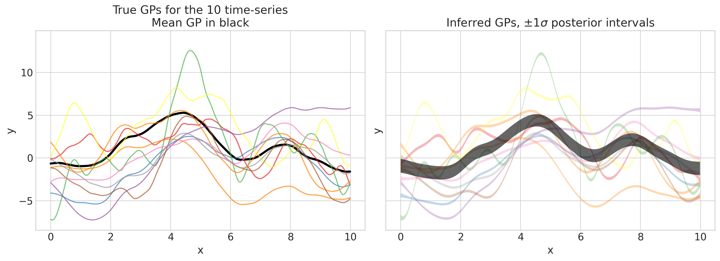 The amount of diversity between the delta GPs is controlled by eta_delta_true: the bigger it is, the more diverse from each other the delta GPs – kind of like the sigma parameter in a hierarchical model (see A Primer on Bayesian Methods for Multilevel Modeling).