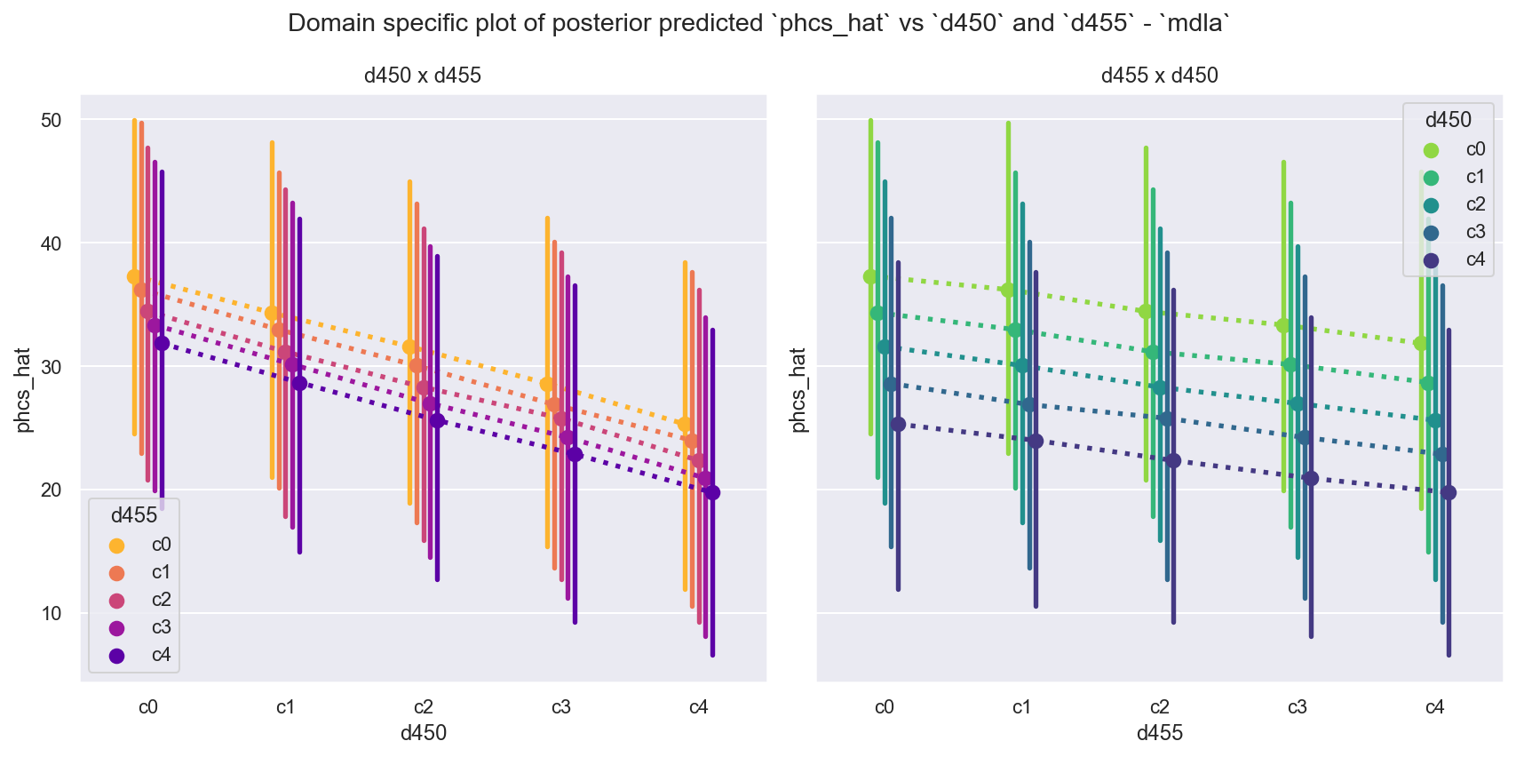 d450and ofd455when treated as ordinal categoriesIn particular, note the behaviours we already saw in the posterior plots