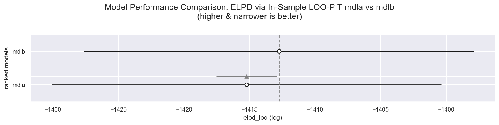 "Model Performance Comparison: ELPD via In-Sample LOO-PIT "