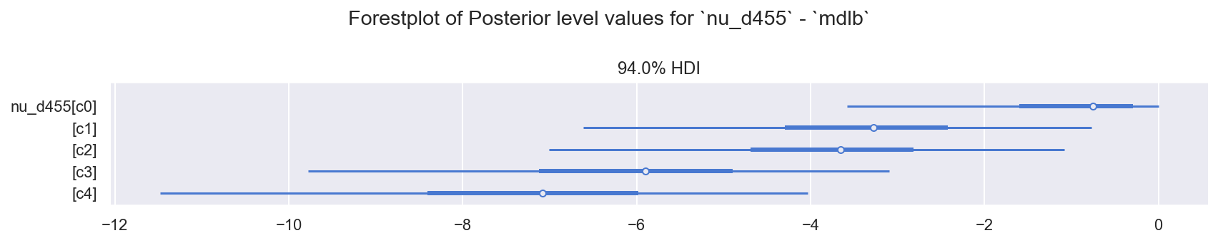 f = plot_posterior_forest(idb, "posterior", "nu_d455", "mdlb")