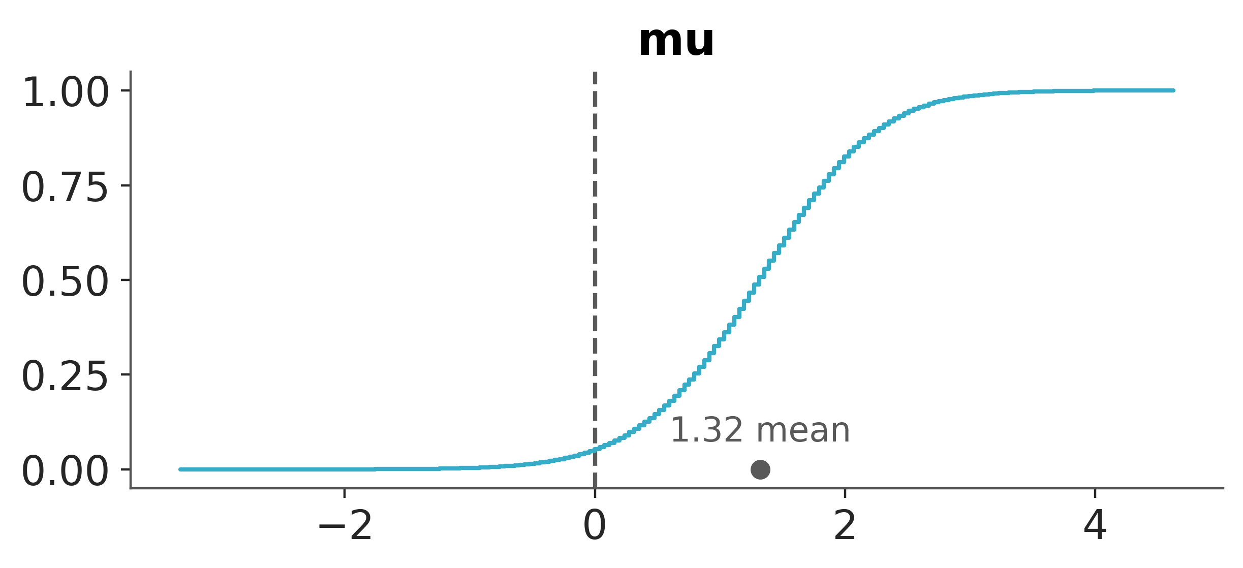 pc = az.plot_dist(idata, var_names=["mu"], kind="ecdf", visuals={"credible_interval": False})