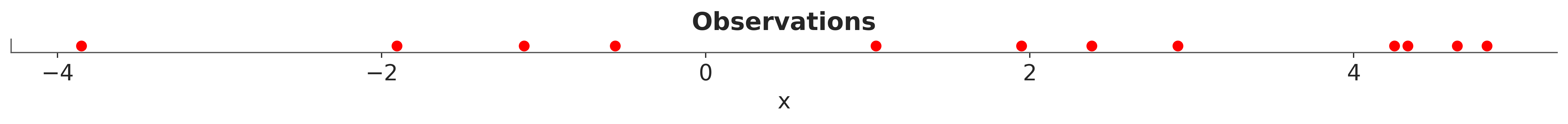 ax.set(yticklabels=[], yticks=[], xlabel="x", title="Observations");