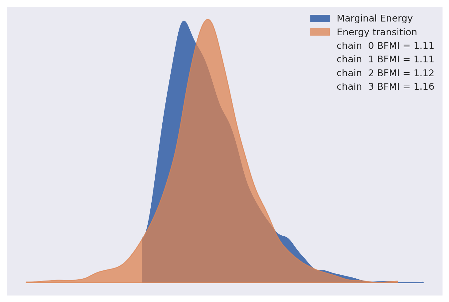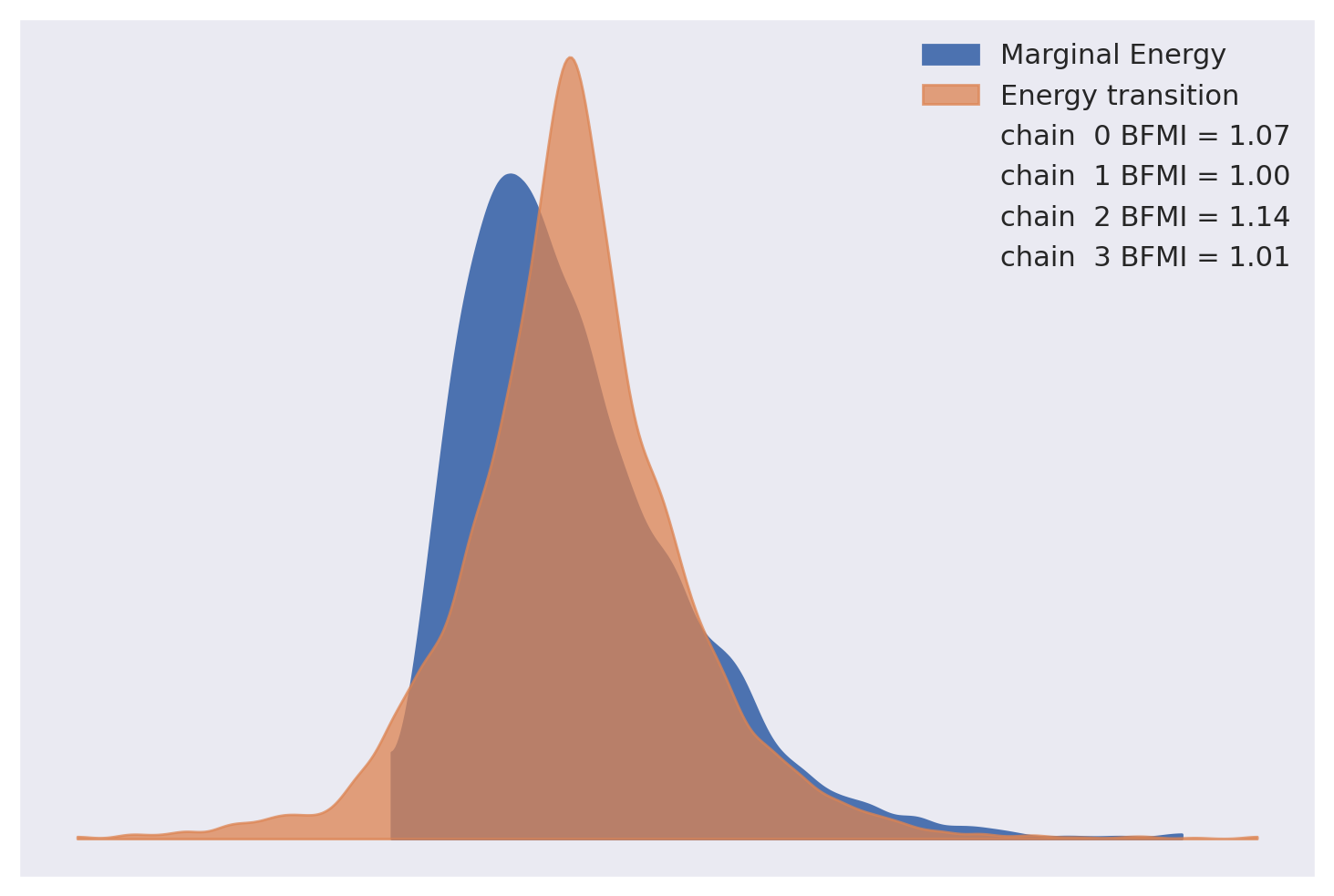 The energy plot and Bayesian fraction of missing information give no cause for concern about poor mixing in NUTS.