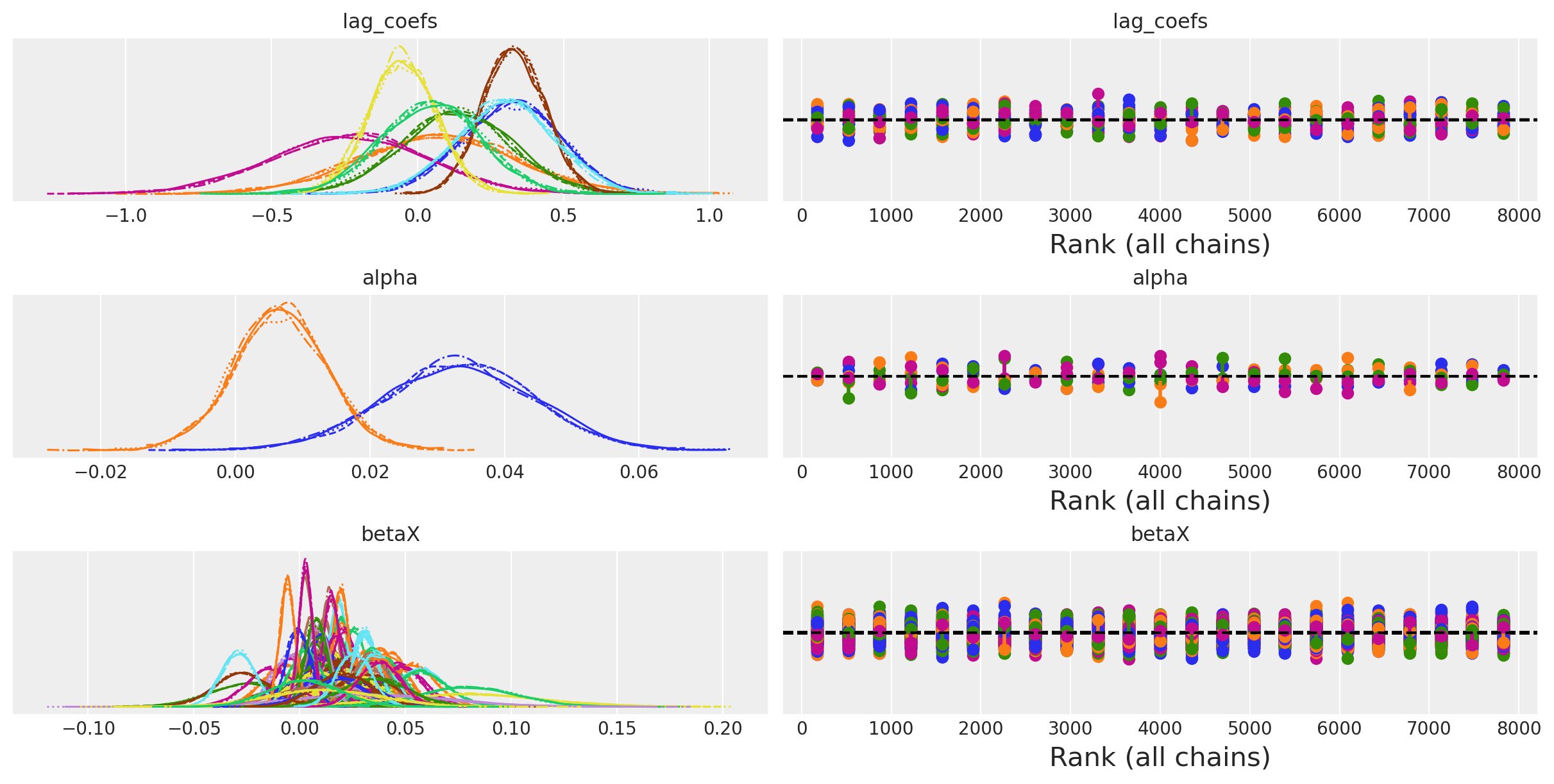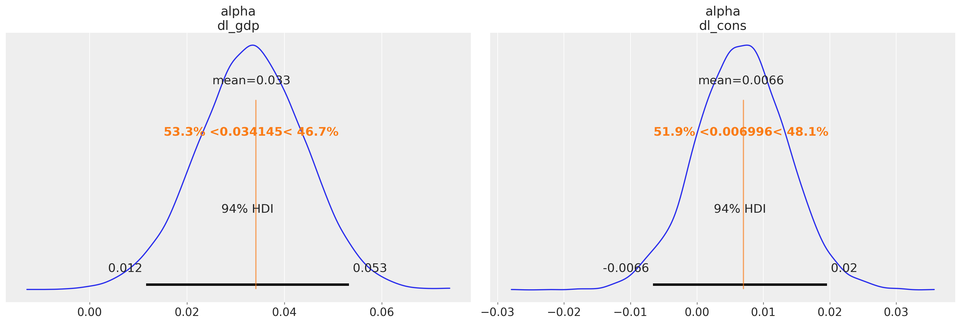 VAR modelling is a rich an interesting area of research within economics and there are a range of challenges and pitfalls which come with the interpretation and understanding of these models. We hope this example encourages you to continue exploring the potential of this kind of VAR modelling in the Bayesian framework. Whether you’re interested in the relationship between grand economic theory or simpler questions about the impact of poor app performance on customer feedback, VAR models give you a powerful tool for interrogating these relationships over time. As we’ve seen Hierarchical VARs further enables the precise quantification of outliers within a cohort and does not throw away the information because of odd accounting practices engendered by international capitalism.